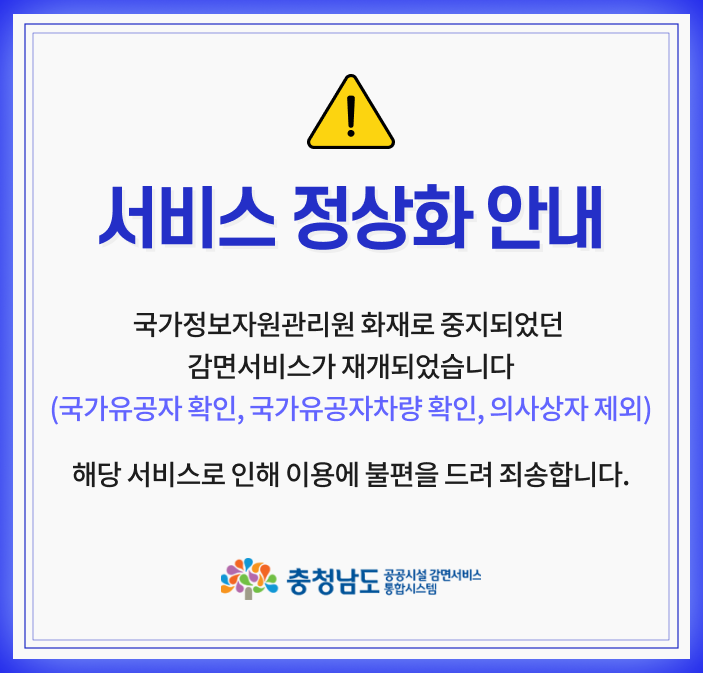 자동차관리정보시스템 중단관련 행공 비대면 자격확인서비스 일시중단 안내